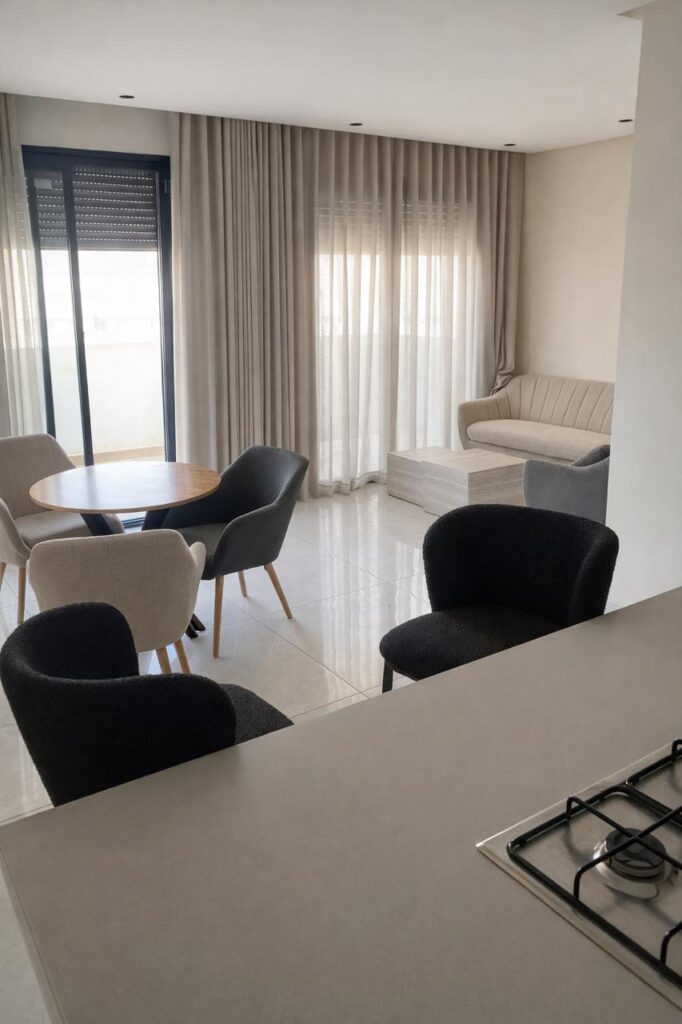 Situé dans un quartier agréable et bien desservi, l’appartement permet un accès rapide aux restaurants, cafés, commerces et principaux axes de Casablanca, ce qui en fait un lieu idéal pour un séjour professionnel, touristique ou de moyenne durée dans la capitale économique du Maroc.