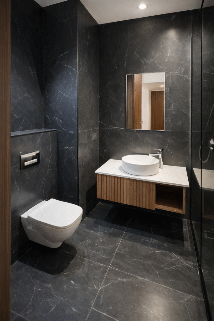 La salle de bain contemporaine, avec douche et finitions élégantes, complète cet espace de vie avec confort et praticité.